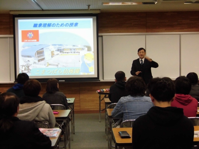 それぞれの実習を前に,姉妹園でもある「こまつばら幼稚園」の園長先生から講話をいただきました。