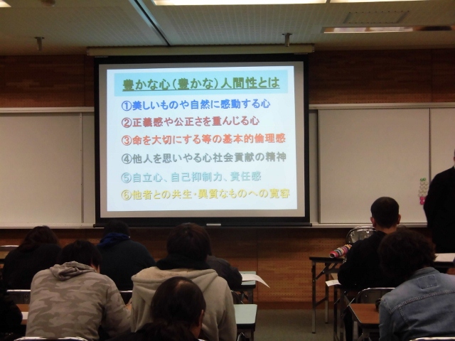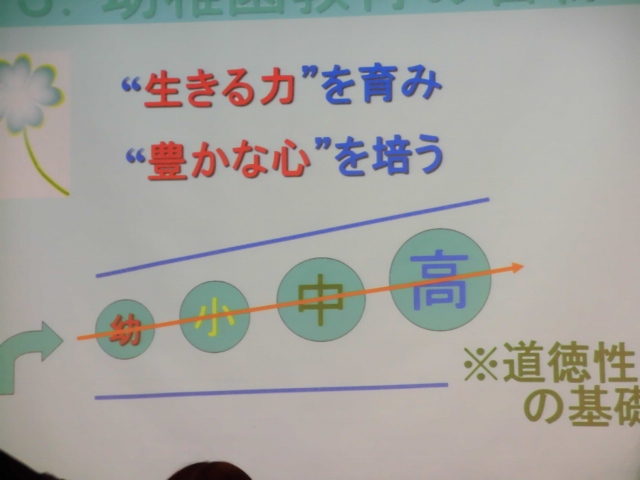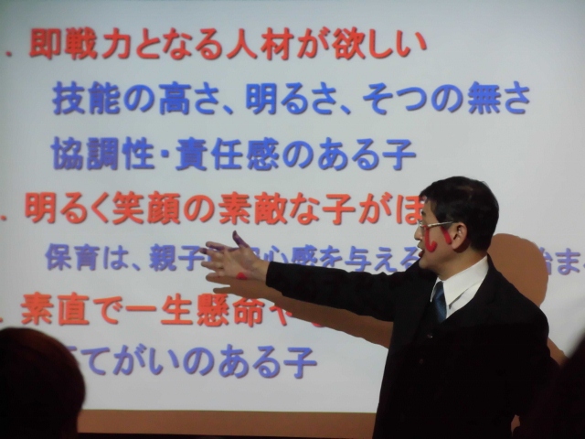 子ども達の「豊かな心」、「生きる力」を育てるために1人1人の性格を知り1人1人にあった援助が必要であること,子どもとの関わり方について詳しくお話を頂きました。