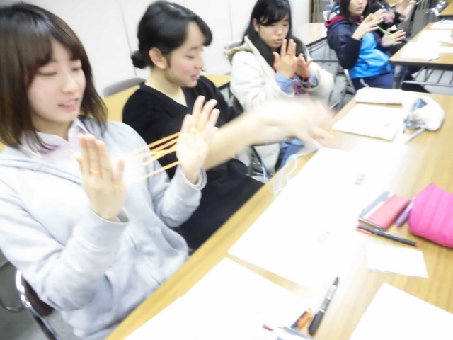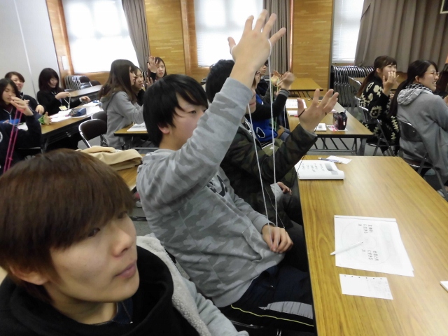 また,保育技術として,あやとりを教えていただきました。、幼少の頃に戻ったかのように楽しく遊びました。