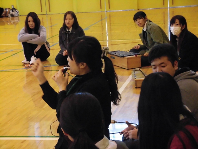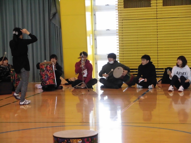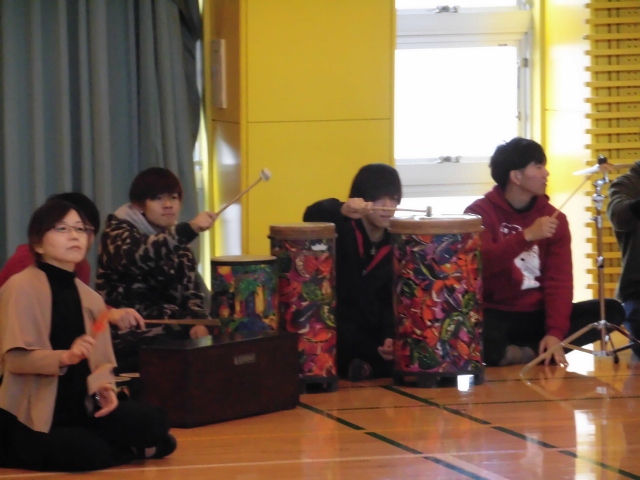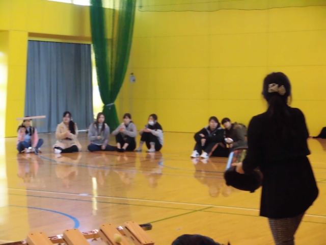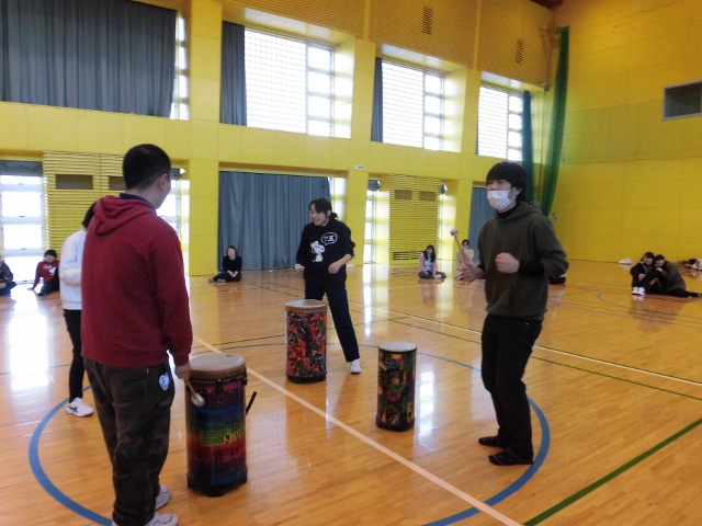 「音楽療法」と聞いて,最初は何をするのかわかりませんでしたが、音楽に合わせて動いてみたり、太鼓やいろいろな楽器を鳴らしてみたりして楽しみました。音楽によって,他の人と繋がることができ、とても楽しい授業でした。またこのような授業があったらぜひ受けてみたいです。