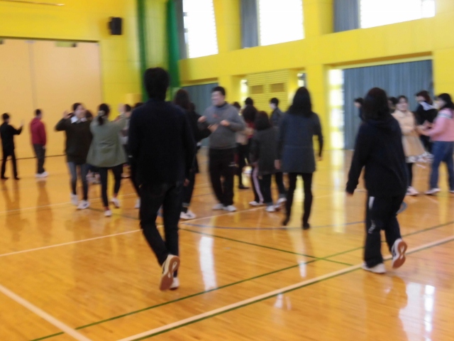 こども学科の全学年と日本語科でグループを作り,伝言ゲームやドッジボール
