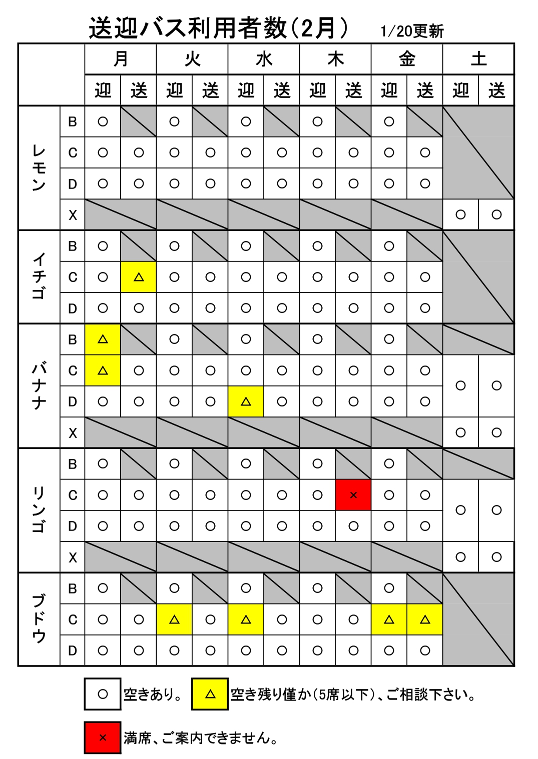 水曜日 【Cコース バナナバス】 水曜日 【Dコース バナナバス】