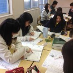 今日は、郷中授業!のスタイルで、そのややこしい『分類法』を医情3年生から、2年生へ教えてもらいました。ついつい眠くなる授業も、今日は、先輩が隣で優しく教えてくれて、学ぶ側の2年生も真剣そのもの(笑)。でも時折笑いがこぼれたり、どよめきがあたったり、とても楽しそうでした。