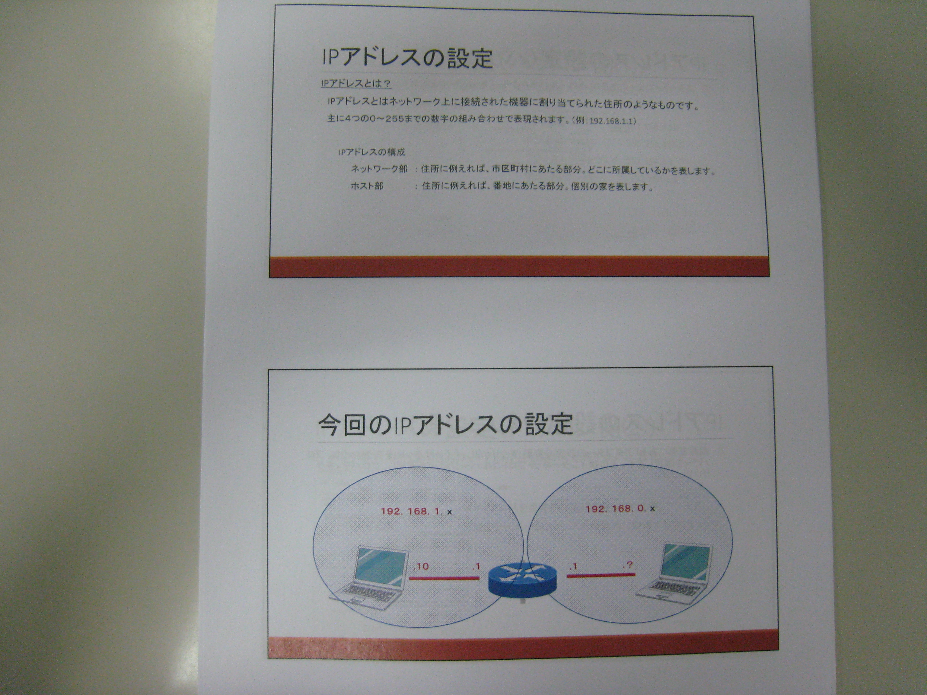 まずは、2台のPCのIPアドレスの設定から。。。難しい。。