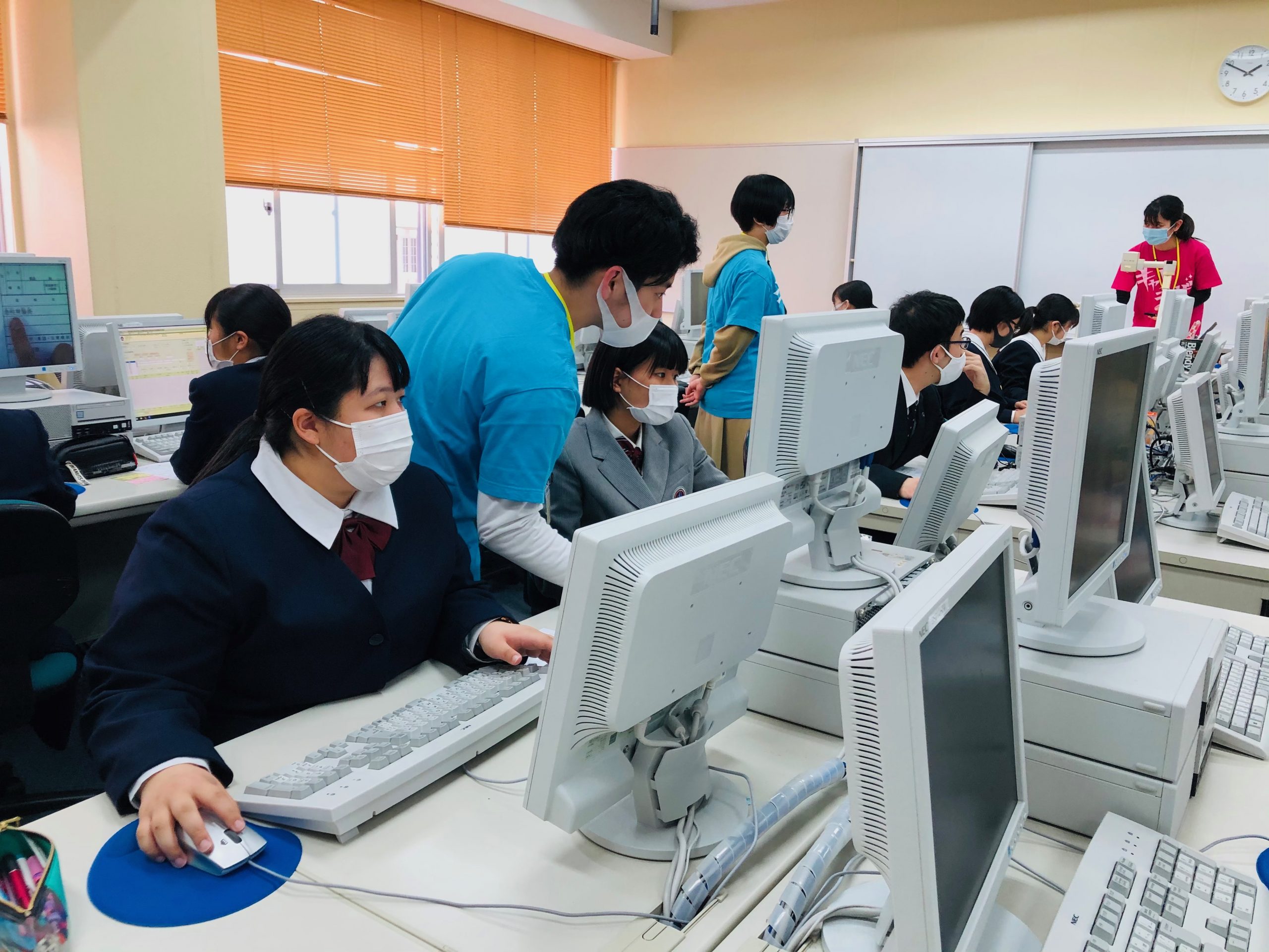 そんなやる気に溢れた高校生に,医療コンピュータ体験では,先輩たちが付きっきりで優しくフォローしてくれていました。