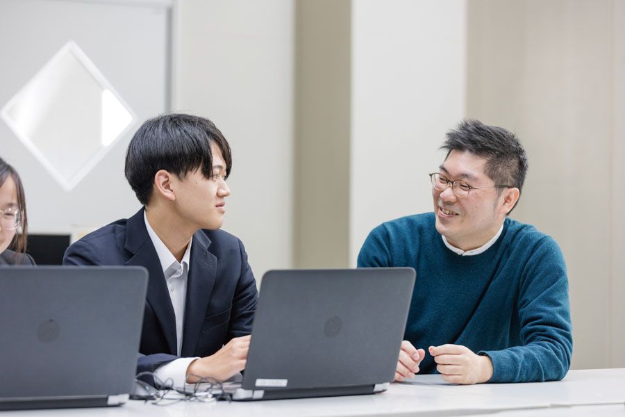 ゼミ:システム開発・機械学習・Web制作・ゲーム制作4分野の中からゼミを選択し、業界の第一線で活躍されているプロの講師陣から、より専門的な内容について学びます。